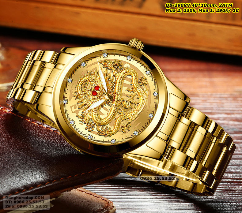 Đồng hồ đôi Rồng Phượng màu vàng được thiết kế tinh xảo, sang trọng với hình Rồng Phượng in nổi 3D. Rồng và Phượng là hai loài vật linh thiêng trong văn hóa Á Đông, tượng trưng cho sức mạnh, quyền lực và may mắn. Hình ảnh rồng phượng được khắc họa một cách sống động, sắc nét, mang đến vẻ đẹp cuốn hút và ấn tượng cho chiếc đồng hồ.