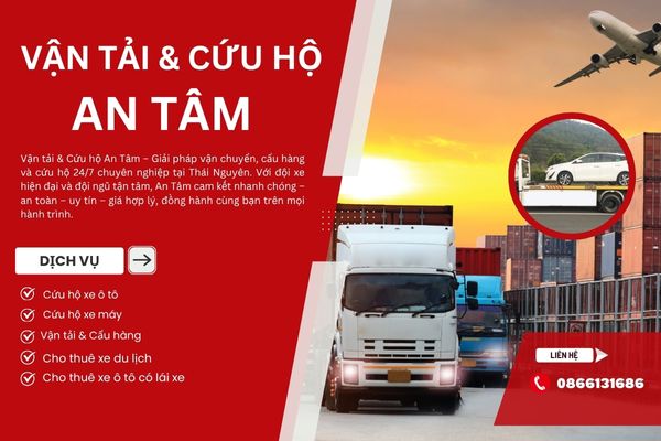 AN TAM RESCUE & TRANSPORT là đơn vị hoạt động chuyên nghiệp trong lĩnh vực vận tải, cẩu hàng, cứu hộ và cho thuê xe, với phương châm “Nhanh chóng – An toàn – Uy tín – Tận tâm.” Chúng tôi luôn nỗ lực mang đến những giải pháp vận chuyển, cứu hộ và di chuyển tối ưu nhất cho khách hàng cá nhân cũng như doanh nghiệp tại khu vực Thái Nguyên và các tỉnh lân cận.